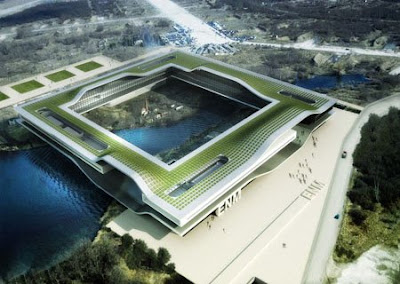 The floating ecopolis, inspired by Amazonian lilypads, are designed to be completely self-sufficient in both power and water, through solar power, wind turbines and rainfall collection.